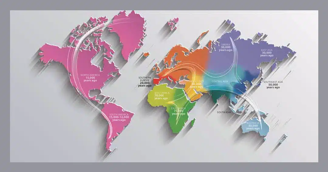 The modern human (Homo sapiens) originated in Africa, the continent where we have spent most of our existence, some 200 000 – 300 000 years ago. It was onlyabout 60 000 – 70 000 years ago that a small East African population migrated out-of-Africa, giving birth to all non-African populations. As genetic diversity continues to increase with time, so the greater genetic diversity within the much older African population can be better explained.